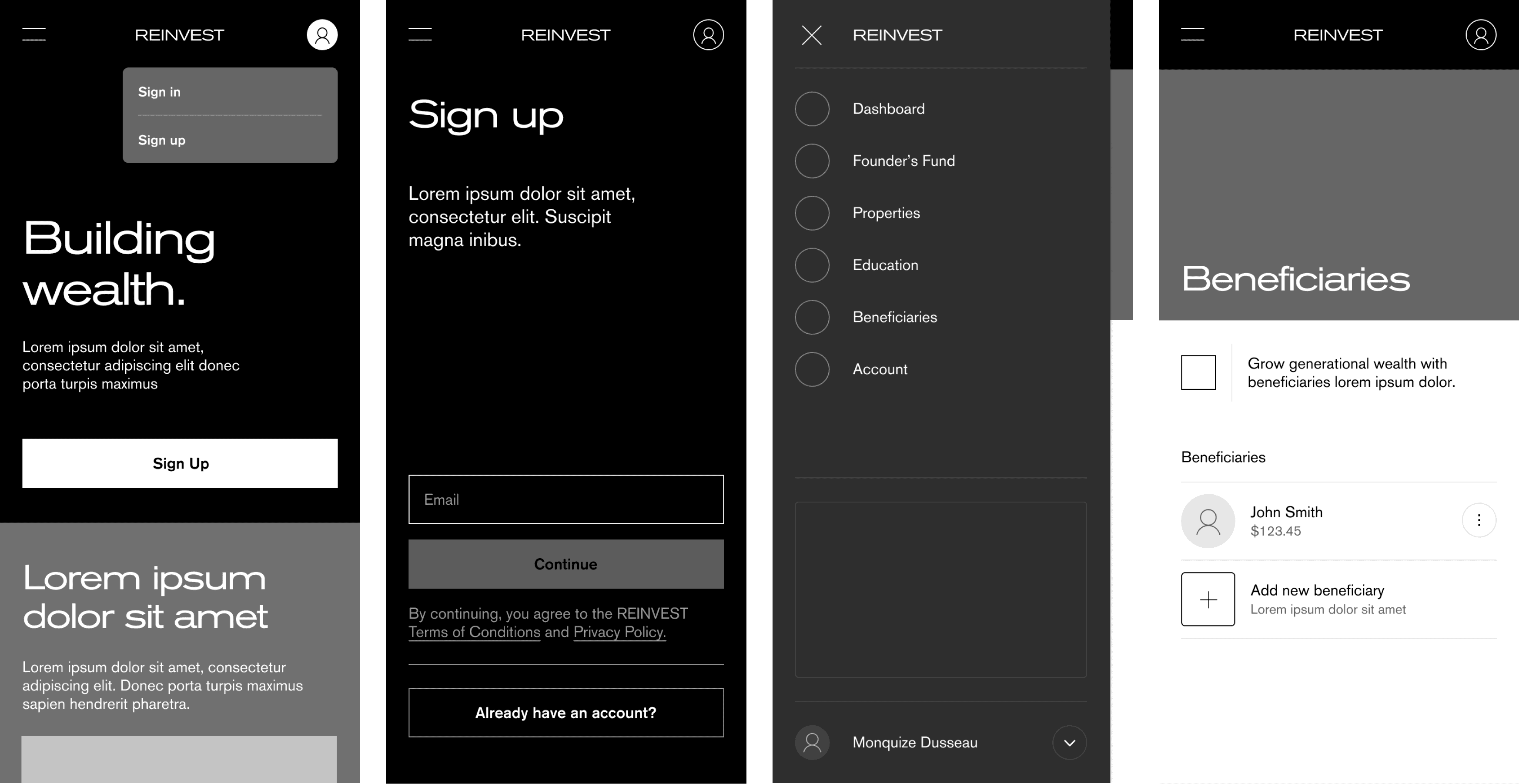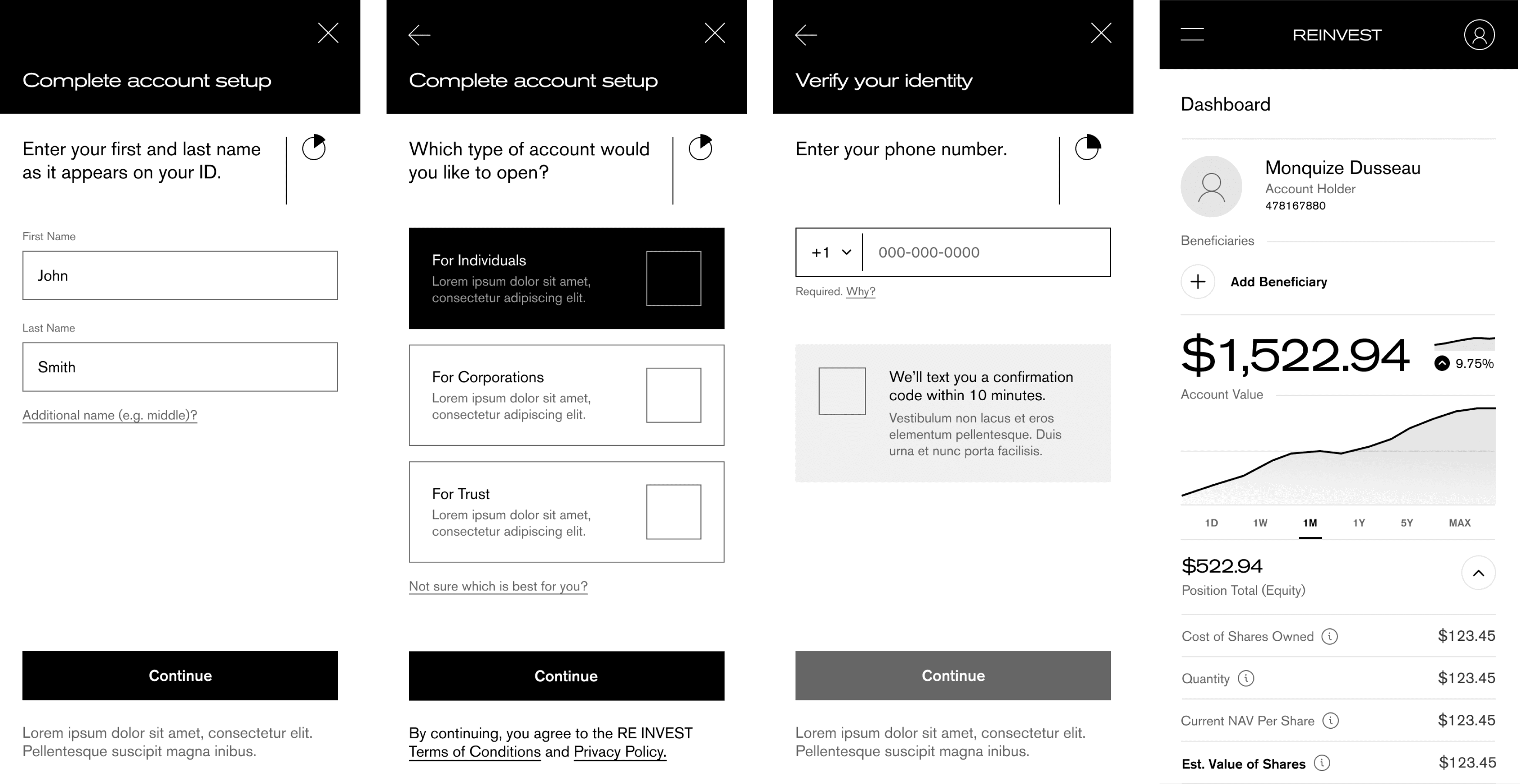 Future Works thought through the multiple step onboarding, investment and retaining experience flows to create a slick environment for uneducated users to easily engage and activate through the app.